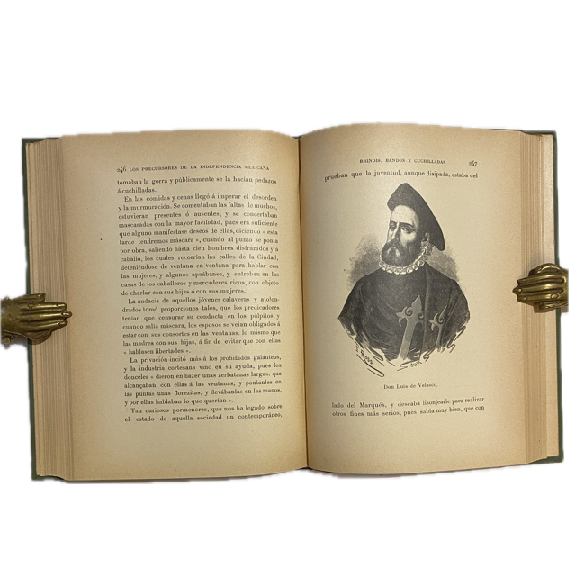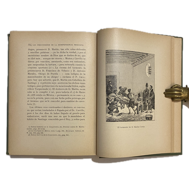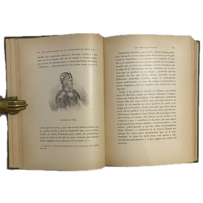 8º. 388 p. Pasta dura en tela editorial color verde; al frente títulos y busto de Hernán Cortés grabados en dorado; canto superior dorado; el lomo presenta una fisura vertical al centro. Los interiores en excelentes condiciones. Incluye varias ilustraciones (dibujos, retratos y fotografías).