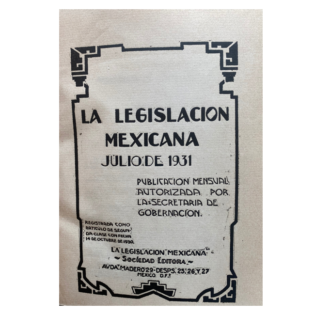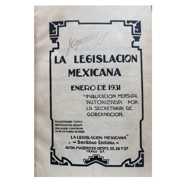 Fue una publicación mensual autorizada por la Secretaría de Gobernación. Colección de 40 números consecutivos de esta importante publicación jurídica, que recoge de manera íntegra las leyes, decretos, reglamentos y demás disposiciones oficiales publicadas en México entre enero de 1931 y abril de 1934. Cada número corresponde a un mes completo, y cubre un periodo clave de la historia legislativa del México postrevolucionario, incluyendo los gobiernos de Pascual Ortiz Rubio y Abelardo L. Rodríguez.