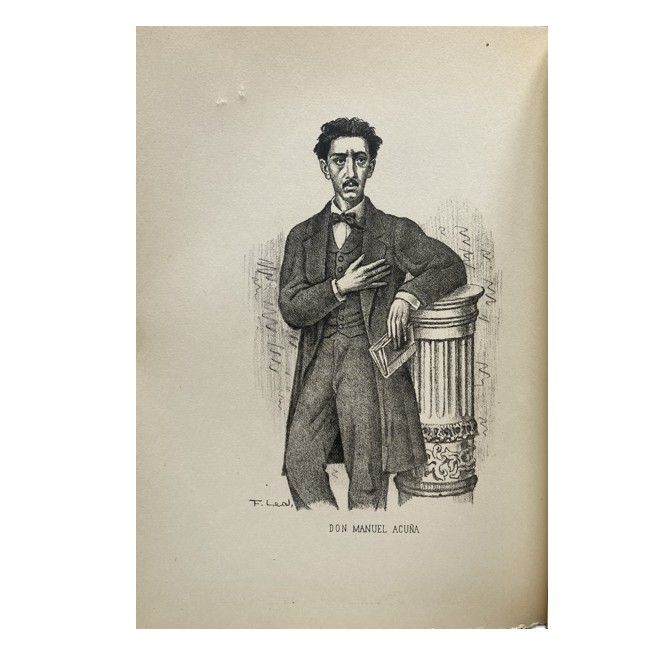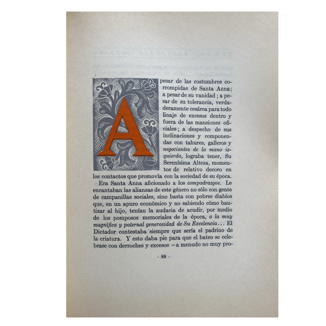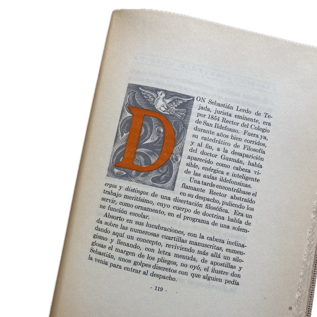 8º. 242 p., [4] h. Encuadernación en yute con tejuelos de piel; al interior conserva el forro rústico del editor. Página de título a dos tintas; capitulares al inicio de capítulos en color; 11 retratos en página completa, fuera de numeración.