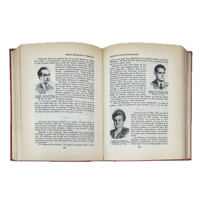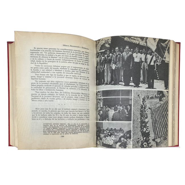 4º menor. xiv,  782 p. Encuadernación del editor en tapa dura color rojo; motivo prehispánico al frente y en lomo; cofias un poco desgastadas. Numerosas ilustraciones y fotografías blanco y negro a lo largo de textos; interiores muy limpios y sin rastro de uso.