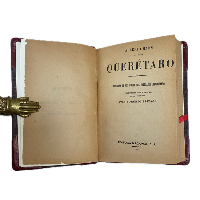 1953. HANS, Alberto. “Querétaro. Memorias de un Oficial del Emperador Maximiliano”