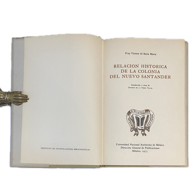 1973. SANTA MARÍA, Fray Vicente de. “Relación Historica de la Colonia del Nuevo Santander”