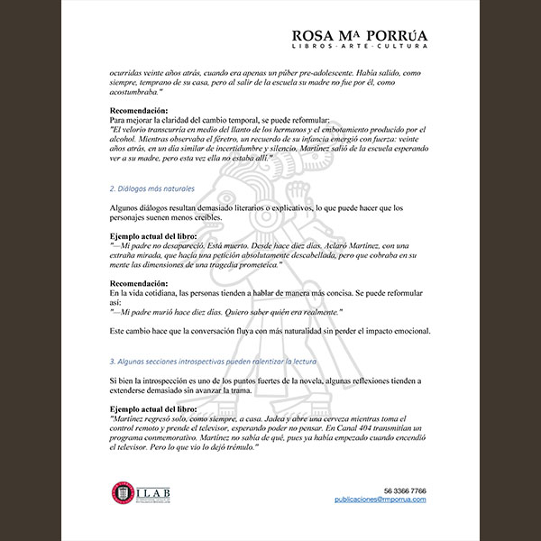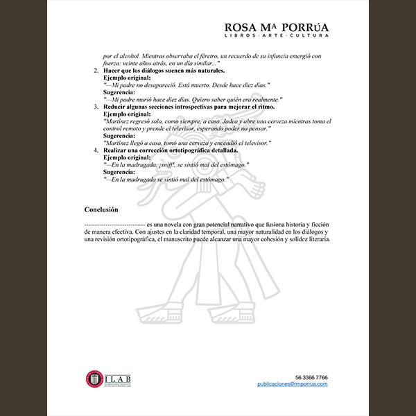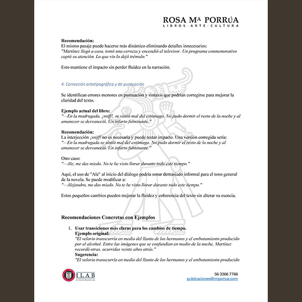 ✅ Las áreas de mejora en estructura, estilo y narrativa.