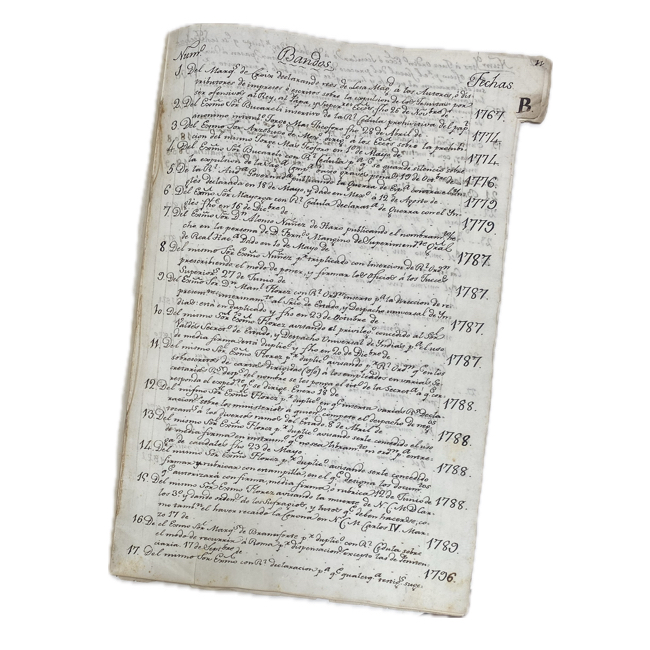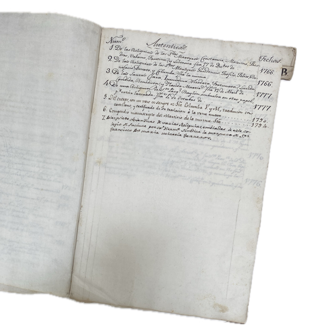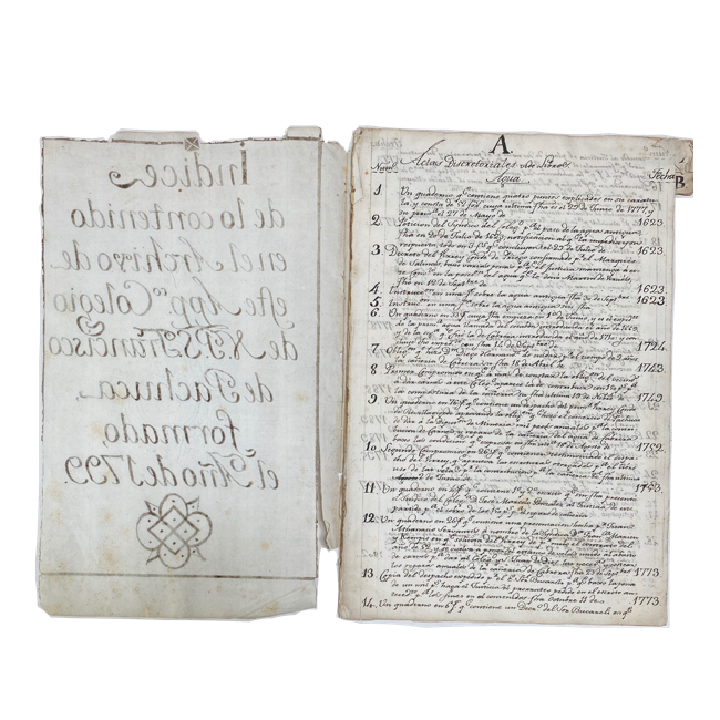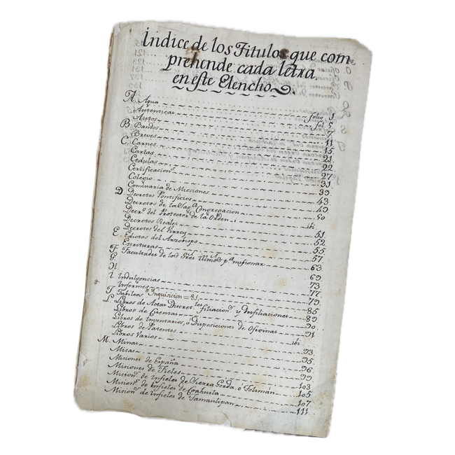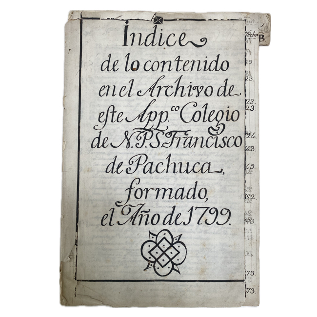 “Índice de lo contenido en el Archivo de este Colegio de N. P. S. Francisco de Pachuca, formado, el año de 1799”
