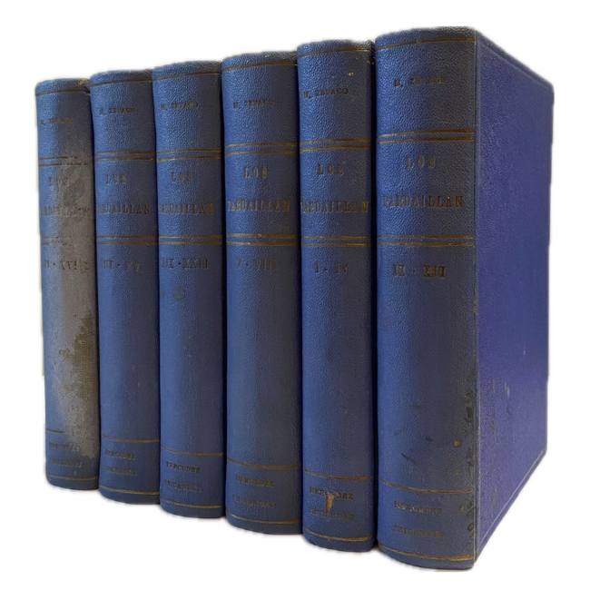 8º. XXII  tomos en 6 volúmenes. Tela editorial color azul. Listón separador de seda azul en cada volumen. Los interiores tostados pero en muy buenas condiciones.