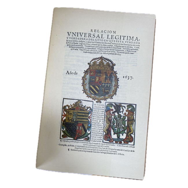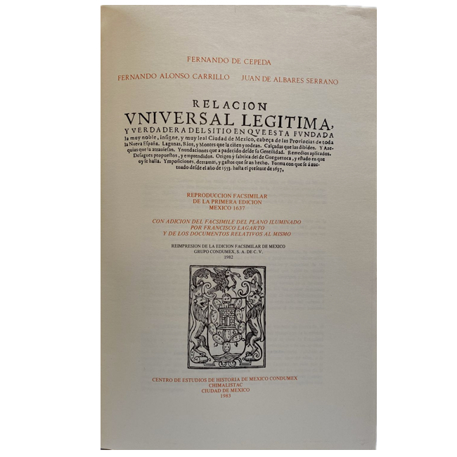 Facsímile de la primera edición de 1637, reimpresión de la edición facsimilar de Condumex (1982). Nota introductoria por Silvio Zavala.