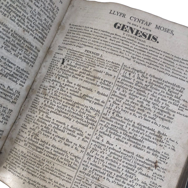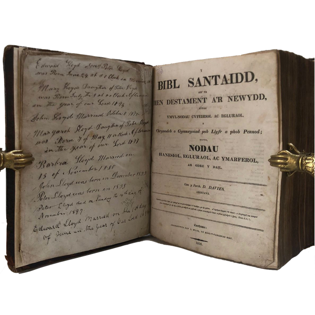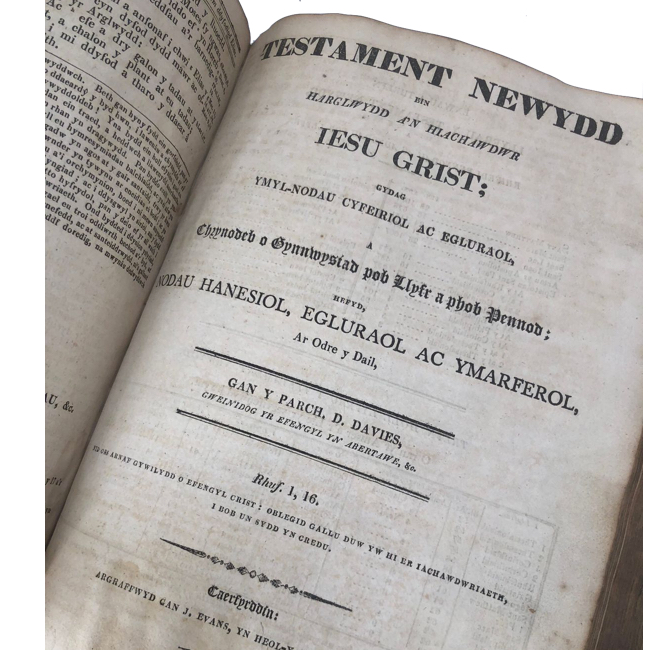 Y Bibl Santaidd, Sef Yr Hen Destament A’r Newydd, Gydag Ymyl-Nodau Cyfeiriol Ac Egluraol, A Chrynodeb O Gynnwysiad Pob Llyfr a Phob Pennod; Hefyd, Nodau Hanesiol, Egluraol, Ac Ymarferol, Ar Orde Y Dail. Gan Y Parch. D. Davies. Abertawe. Caerfyrddin: Argraffwyd Gan J. Evans.