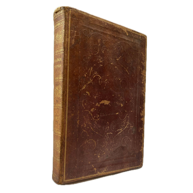 4º. Encuadernación de época en piel completa; lomo y pastas con bastante desgaste. Interiores muy bien marginados; papel tostado en las cajas de texto, pero en general en muy buenas condiciones.