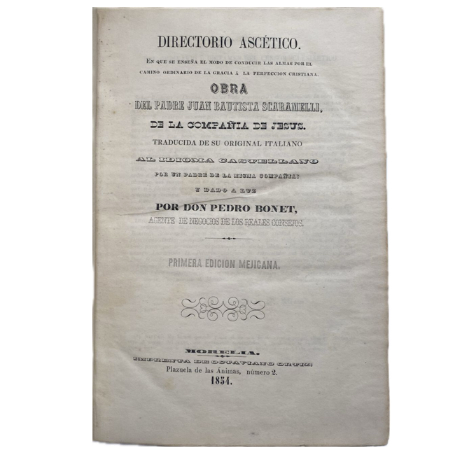 Morelia, Imprenta de Octaviano Ortiz, 1854.