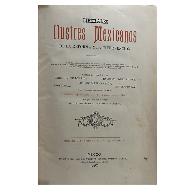 México: Daniel Cabrera Editor -Imprenta del Hijo del Ahuizote-, 1890