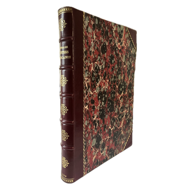 4º mayor. [3] h., 440 p. + índice. Holandesa con puntas, moderna; cinco nervios realzados y dorados en lomo. Página de título a dos tintas; textos a dos columnas. 36 láminas fuera de numeración con retratos; frontispicio alegrótico.