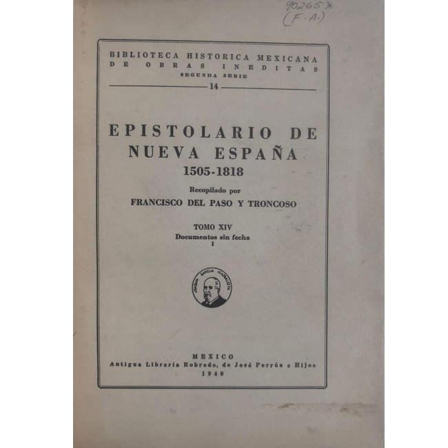 9 julio, 20241939-1940. DEL PASO Y TRONCOSO, Francisco. “Epistolario de la Nueva España”